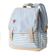 Tips Japan and Korean Style Canvas Backpack Fresh Dot Striped Teenagers Girls Travel Bag Laptop Backpacks withy Cute Pink Bow Rabbit Don't wait