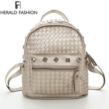 Knit Leather Girl Backpack School Bag For Teenage Small Rivet Top-handle Women Bag Mochila Escolar Feminina Herald Fashion New
