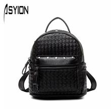 ASYION Korean Style Backpack 2016 News Rivets PU Knitting Women's Backpacks for Teengers Mini School Backpack Mochilas HC5060