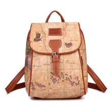 Ladies MAP Bag 2016 New Trendy Vintage Printing PU Leather Backpack Women Simple Belt Buckle Packsack Fashion Travel Bag