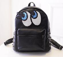 Low Price Korean version of the cartoon sequined eyes rivet pu leather shoulder bag backpack College Wind Ms. Direct Revise