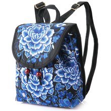 Buying Colorful National Pattern Hasp Design Canvas Embroidered Backpack Shoulder Bags Women Zipper Handmade Flowers Printing Brand New