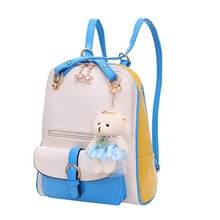 Free Shipping 2016 New Preppy Style leather Student School Girl Women Backpacks Black+Blue+White Color ACC131