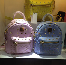 Fashion All-Round Use x-mini backpack M brand design rivets pvc shoulder bag daily bacpack women bag x-mini/mini/s pink/blue E42