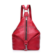 Buy Discount Fashion Women Genuine Leather Backpack Ladies Rivet Travel Head Cowhide Leisure Double Shoulder Bag Female Unique Bolsas QZ4649 Wholesale