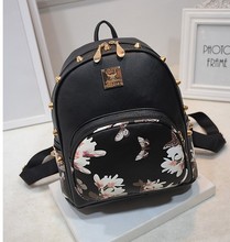 2016 Fashion Women cute Floral Printing Leather Backpacks Vintage Schoolbags for Girls Female Bagpack with rivet Feminina