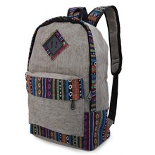 Durable Ethnic Canvas Zipper Bag Girl Casual Floral Print Color Block Women Canvas Backpack for Outdoor/Travel/School/Laptop
