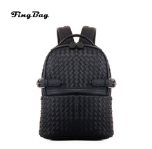 Buy PU leather casual female students backpack bag high quality women's solid Plaid woven shopping bag party woman backpack Order