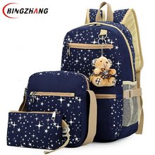 2016 Women Backpack With Bear School Bags For Teenagers Girls Outdoor Backpacks Star Printing Bookbag Back Pack 3 pcs L4-2596