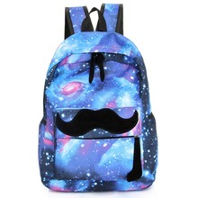 Solution Women mustache Galaxy Stars Universe Space printing canvas backpack School bag Backpacks bag mochila free shipping A70-435 Best Quality