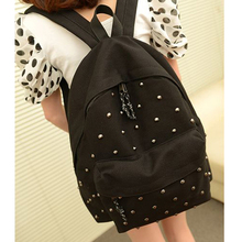 Undisputed 2014 casual backpack canvas bag preppystyle student school bag solid color rivet double-shoulder women's backpack X20-086 Don't miss