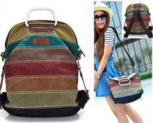 high quality k2 canvas backpack patchwork rainbow color block women canvas backpacks rucksack Multifunction girls crossbody bag