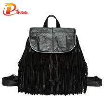 low price 2016 Popular Genuine Leather Tassel Backpacks Cowhide Leather School Bag Casual Travel Bags Free Shipping Limited supply