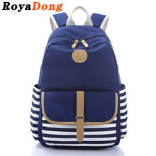 Cheapest RoyaDong Backpack Women School Bags For Teenagers Youth Canvas Backpack Stripe Navy Fresh 2016 Rucksack Mochila Chica Bagpack Undisputed