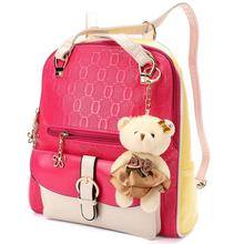 Order Dual Design Women Backpacks Fashion Girl PU Leather Backpack School Bag Travel Rucksack Bear Pendant Bookbag Patchwork Portable Cheapest