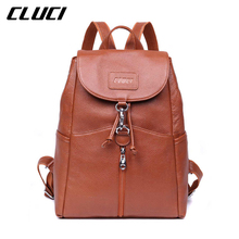Create CLUCI 2016 Ladies Drawstring Backpack High Quality Zipper Genuine Leather Laptop School Backpack Women's Bags Mochila Feminina Buy