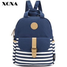 Buying Navy Stripes Japanese Korean Teenage Girls School Backpacks Canvas Bag Small Mochila Masculina Daily Casual Women's Backpack Online