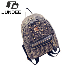 2016 New Arrival High Level Leather Lady Backpacks Women Rivet Backpacks Student School Bag Women Leather Backpack