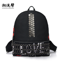 Immediately New High Quality Cowhide Leather Women Backpack All Match Fashion Rivets Female Backpacks Black Students Bags CLB15-286 best price