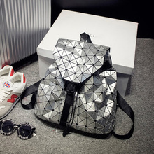 lowprice 2016 Fashion Backpack Women Geometric Lattice School Bags for Teenages Girls Bagpack Chic Casual Backpack PU Mochilas Feminina Brand New