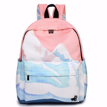 Used Landscape Embroidery Printing Design Backpack Women Casual Canvas Backpack School Bags For Teenager Girls Rucksack Mochila XA47D Cheap