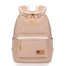 Help 2016 new khaki cloth bag light blue dots ladies backpack mochila women canvas backpack 15.6 laptop bag white lace bags for girls Brand New
