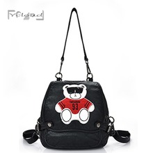 Create New Bestsellers Cartoon Printing Splice Bear Women's Backpacks Preppy Style Fashion Black Multifunction PU Leather Shoulder Bag Good