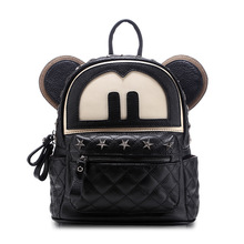 2016 The New Spring and Summer Head Layer Cowhide Mickey Cartoon Big Ears Rivet Ling Lattice Backpack Backpack