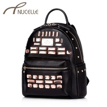 Buy Nucelle Women Genuine Leather Backpack Fashion Ladies Cowhide Rivet Diamonds Female Daily Double Shoulder Bags Brand Gift NZ5809 This instant