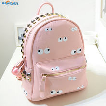 Help 0422 Hot Black PU Leather Backpack Fashion Personality Cartoon Big Eye Solid Rivet Backpack Leisure Travel Shopping Bag Learn