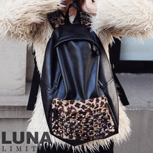 The new tide fashion splicing leopard rivet package big student shoulders endorsement