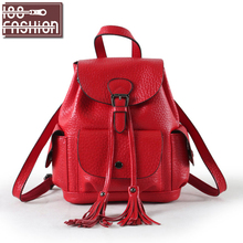 Secrets 2016 Women Leather Backpack Genuine Leather Vintage Tassel Fashion Backpack for Girls Preppy Style School Backpack mochila Look At