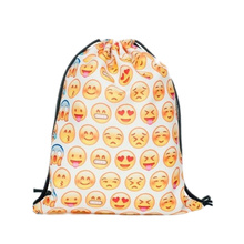 Best Quality Emoji softback drawstring backpack bag canvas women smile digital printing cotton Backpacks leisure Bag Women's Casual Daypacks Expert
