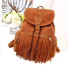 Tassel Backpack Vintage Drawstring Suede Leather Backpack Bags for women mochila feminina Women backpack Fringe suede bag