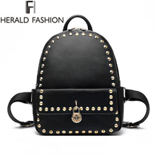 New PU Leather Girl Backpack School Bag For Teenager Small Rivet Top-handle Women Bag Mochila Escolar Feminina Herald Fashion