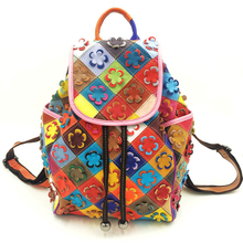 Summer Backpack Genuine Leather Women Shoulder Backpacks student School Bags Colorful Flower Patchwork Beach Girl Backpack Bag