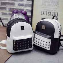 Solve 2016 New Women's Fashion Rivet Backpacks School Bags for Teenagers PU Black with white Backpack Famous Brands Leather Backpack Learn How