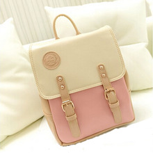 Comment 2015 New Fashion Contrast Color PU Leather Backpack Preppy Style Women Backpacks 4Colors Sweet Beautiful Gril's School Bag Learn How