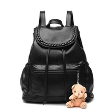 Create 2016 New Fashion Women PU Backpack Ladies School Backpacks for Girls Teenager Cute Black Color Braid Style for A4 Magazine Good