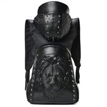Cool MEN Hip-hop Rock Style 3D Lion Backpacks Street Fashion Black Rivet Bagpacks Outdoor Travel Camping Motorcycle Bags 1038TP