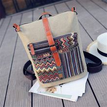 National Wind Canvas Backpack With PU Belt School Bags For Teenagers Women Shoulder Bag Backpack Mochila Femme Ethnic Rucksack